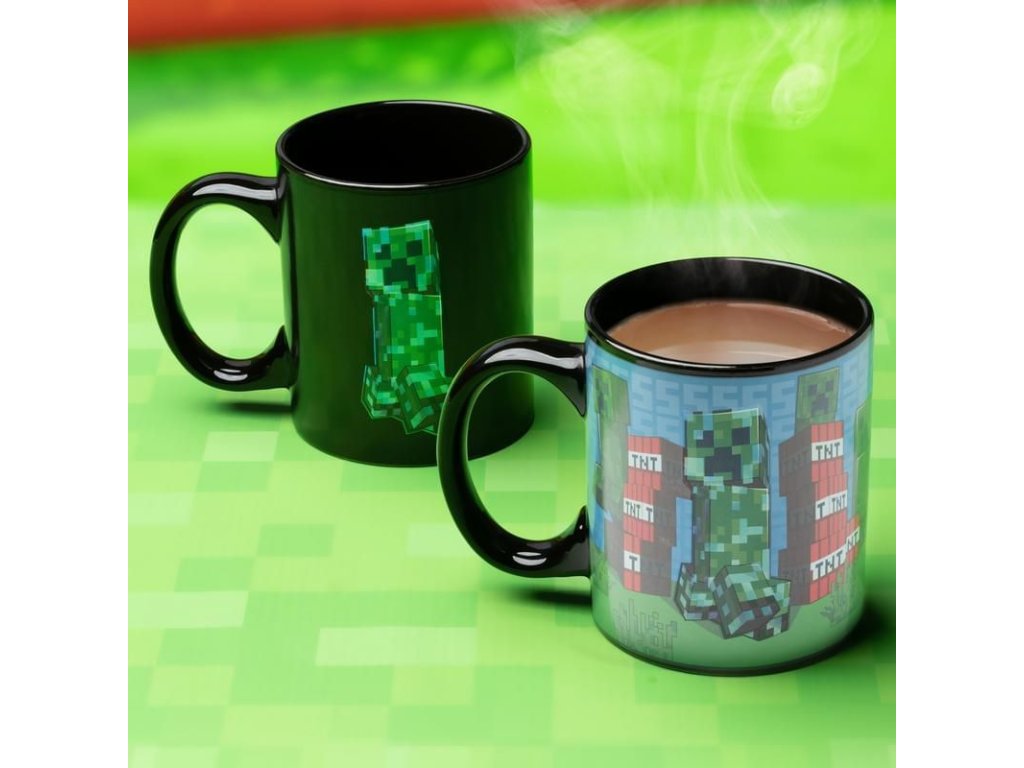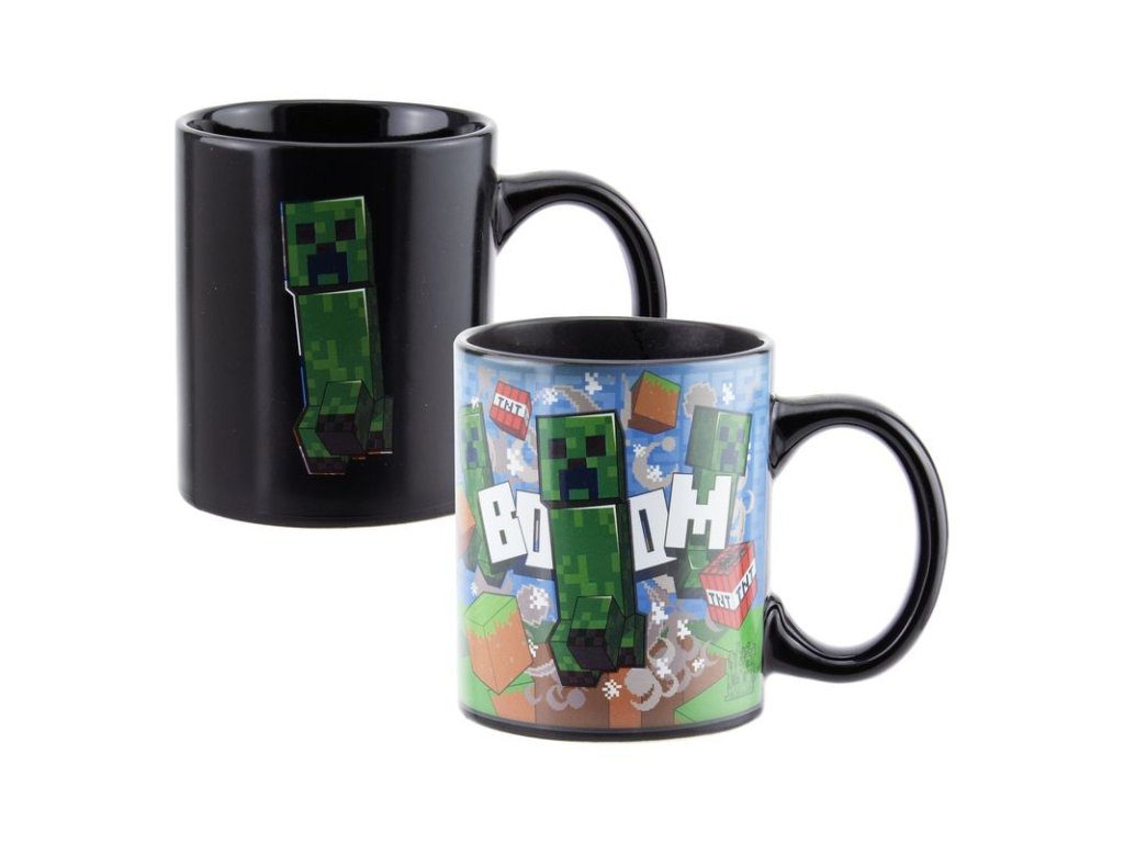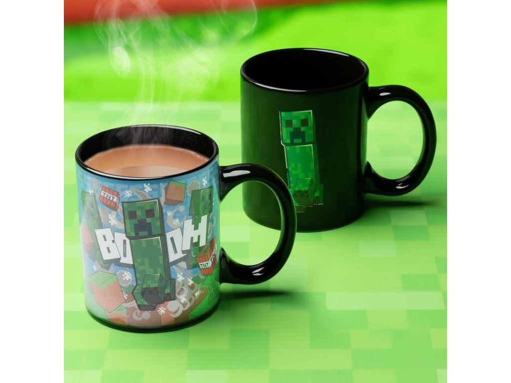 Oživte své herní zážitky s tímto oficiálně licencovaným keramickým hrníčkem inspirovaným hrou Minecraft. Stačí nalít horký nápoj a sledujte, jak se design hrníčku promění – zobrazení Creepera a bloků TNT se objeví díky termoreaktivní technologii.