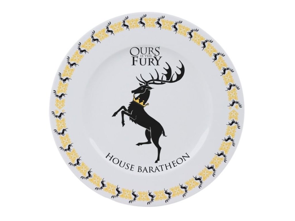 Přineste si kousek Západozemí na svůj stůl s touto stylovou sadou 4 talířů inspirovanou světem Game of Thrones. Každý talíř je věnován jednomu ze slavných rodů – Stark, Lannister, Targaryen a Baratheon – a nese unikátní grafiku znaku daného rodu.
